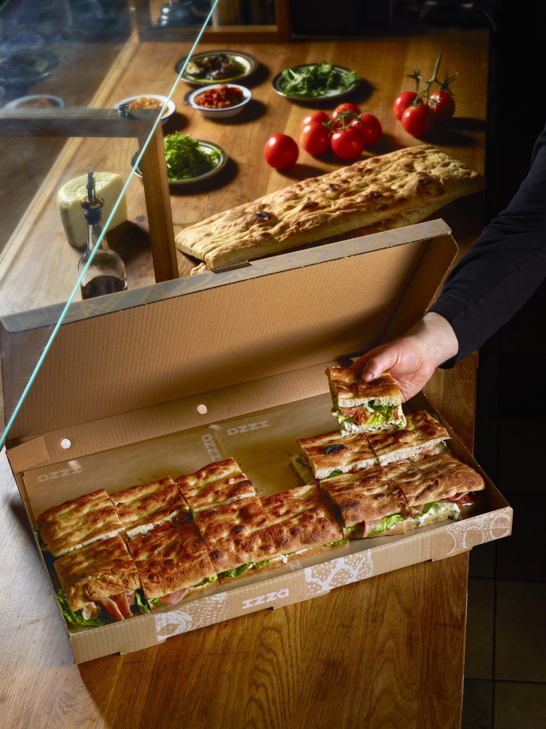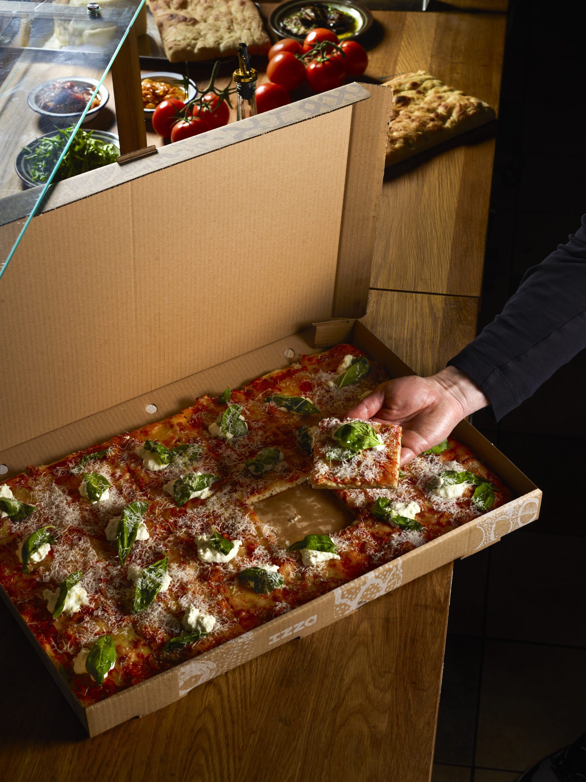 Huomioithan, että pizza- ja schiacciata-laatikot ovat suuria – isommissa tilauksissa on hyvä olla apukäsiä vastaanottamassa tilaus!